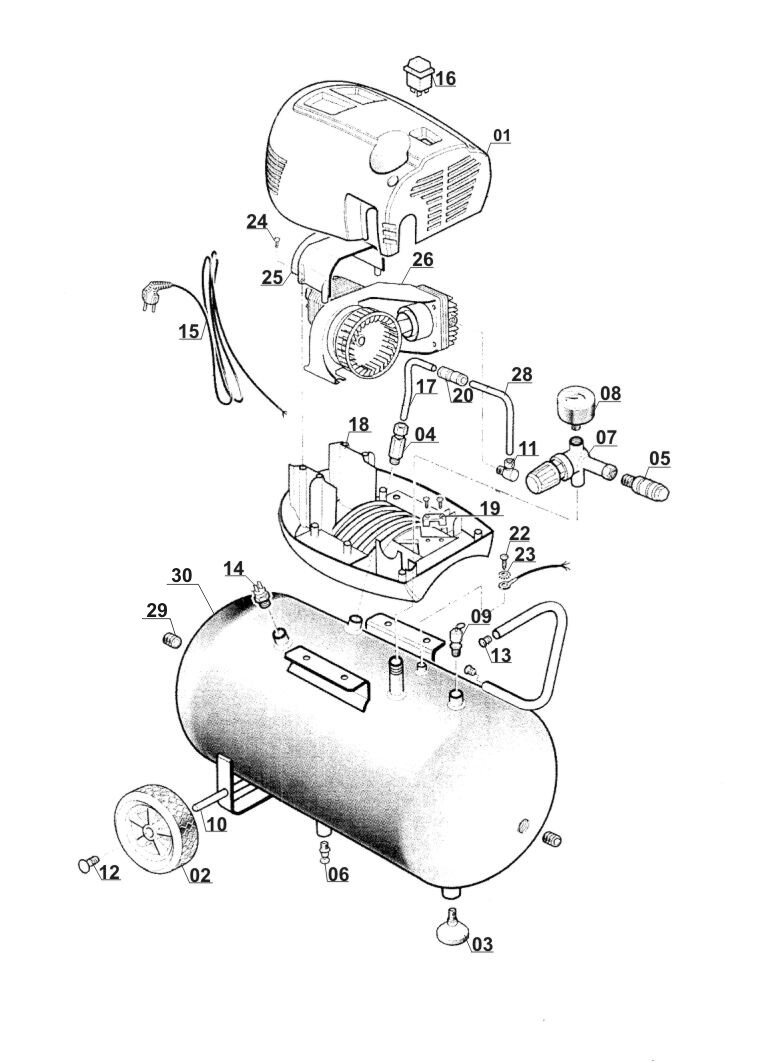 Zeichnung Sollten Sie Fragen zu einem Ersatzteil vom Einhell Kompressor BT-AC 200/24 OF ( 402050511031 ) haben, können Sie uns gerne eine E-Mail (mit einem Foto vom Typenschild Ihres Gerätes) schreiben oder eine Ersatzteilanfrage stellen.