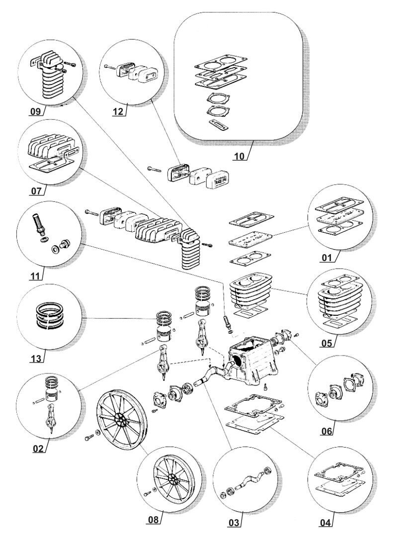 Folgende Ersatzteile für Einhell Kompressor Kompressorpumpe ( 401023001030 ) können Sie hier bestellen: