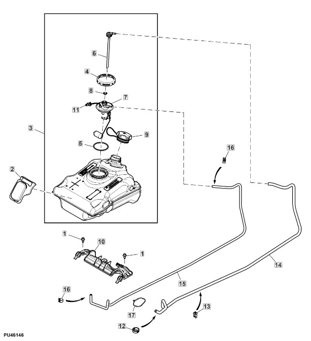 Folgende Ersatzteile für John Deere Rasentraktor X167 (PC13999) aus der Zeichnung Kraftstofftank - ST1016341 können Sie hier bestellen: