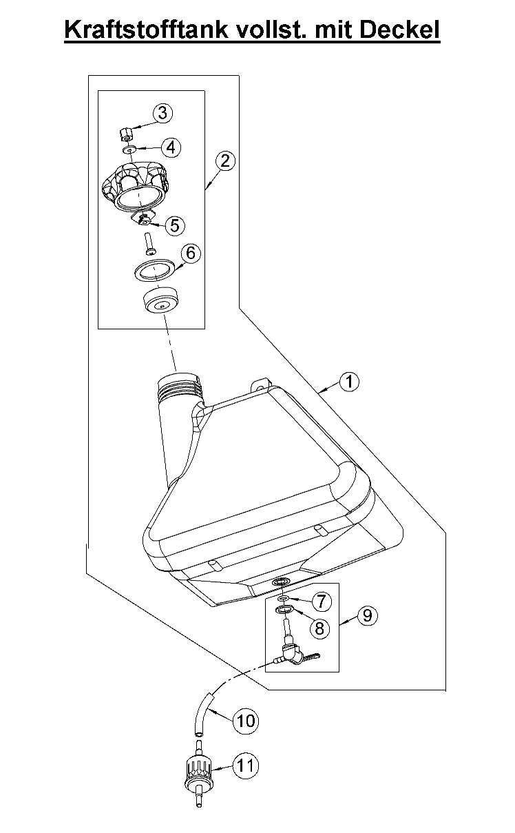 Hier finden Sie alle Ersatzteile von AS-Motor Allmäher AS 65/2T ab FNr. 014902303001 aus dem Zeichnungsblatt Kraftstofftank vollst.m.Deckel: