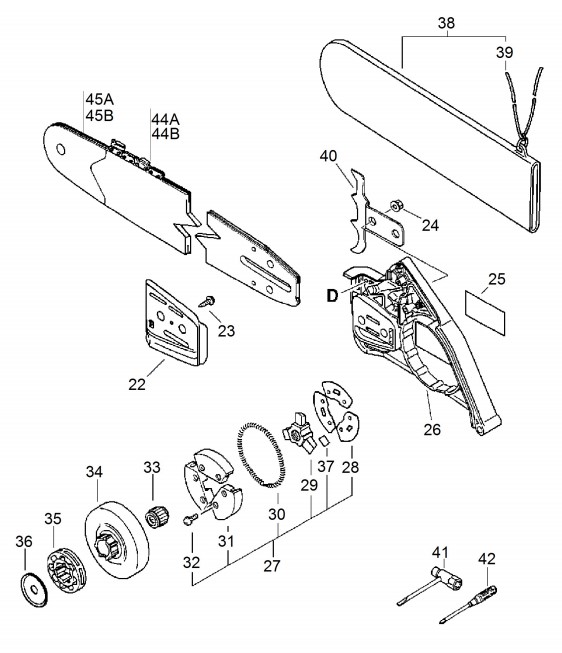Zeichnung von ECHO Motorsägen CS-3900 Kupplung, Schneidgarnitur:
