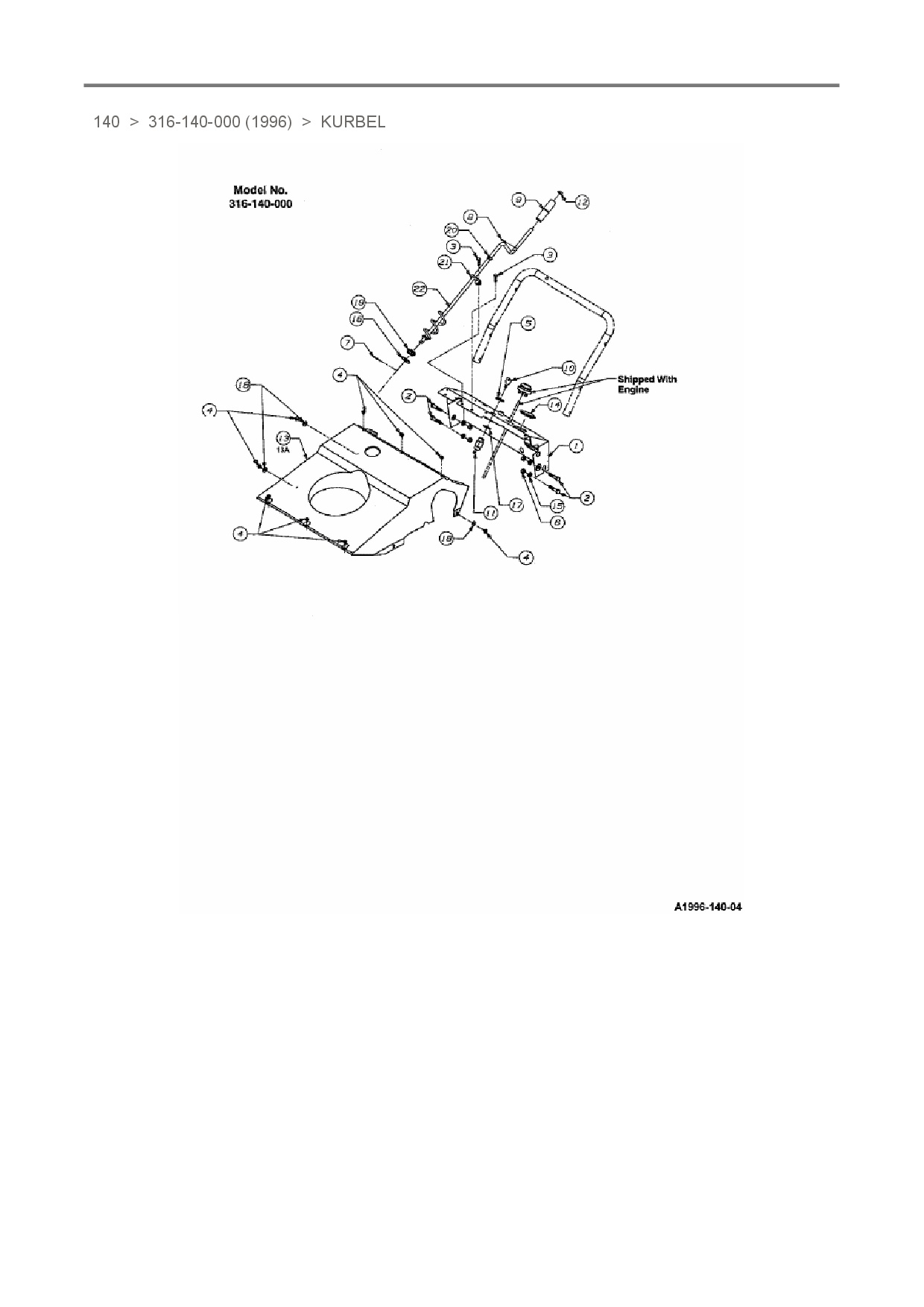 Zeichnung für MTD Schneefräse 140 mit der Geräte-Artikelnr. 316-140-000 ab Baujahr 1996: