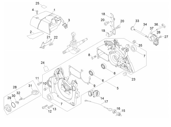 Zeichnung von ECHO Motorsägen CS-610 CS-610 ab S.-Nr.: 36002251 Kurbelgehäuse, Öltank, Motorabdeckung: