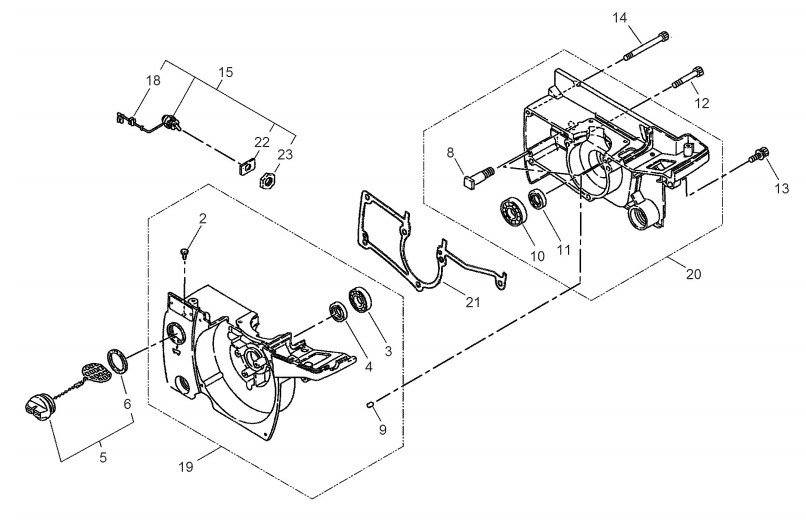 Zeichnung von shindaiwa Motorsägen 360 Kurbelgehäuse, Öltank:
