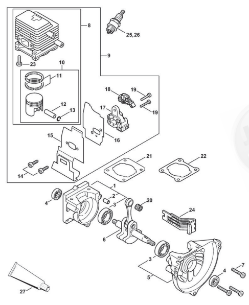Hier finden Sie alle Ersatzteile von Stihl Kombi- MultiSystem KM 85 der Zeichnungsgruppe Kurbelgehäuse, Zylinder: