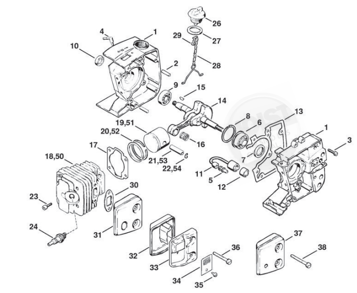Hier finden Sie alle Ersatzteile von Stihl Benzin-Motorsägen 020 - 1114 der Zeichnungsgruppe Kurbelgehäuse, Zylinder: