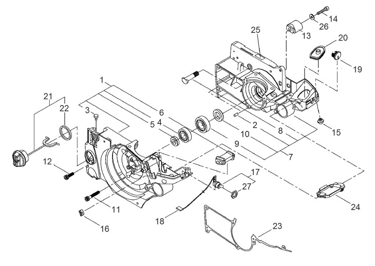Zeichnung von shindaiwa Motorsägen 389S Kurbelgehäuse: