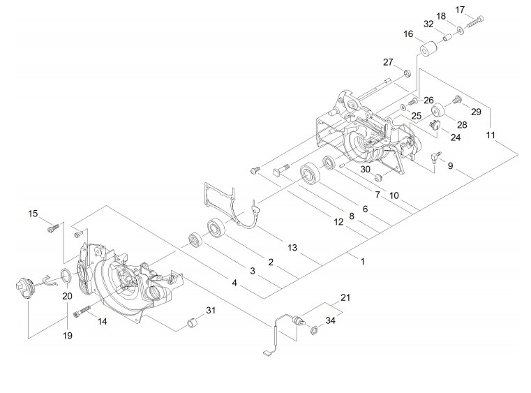 Zeichnung von shindaiwa Motorsägen 390sx 390sx bis S.-Nr.: 37001700 Kurbelgehäuse: