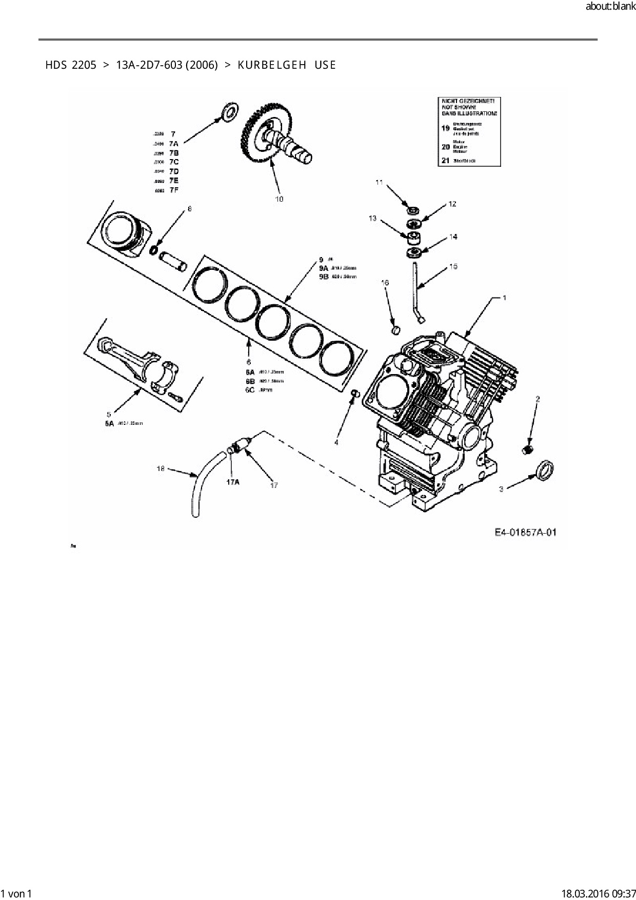 Ersatzteile für Rasentraktor Cub Cadet HDS 2205 aus der Zeichnung Kurbelgehäuse:
