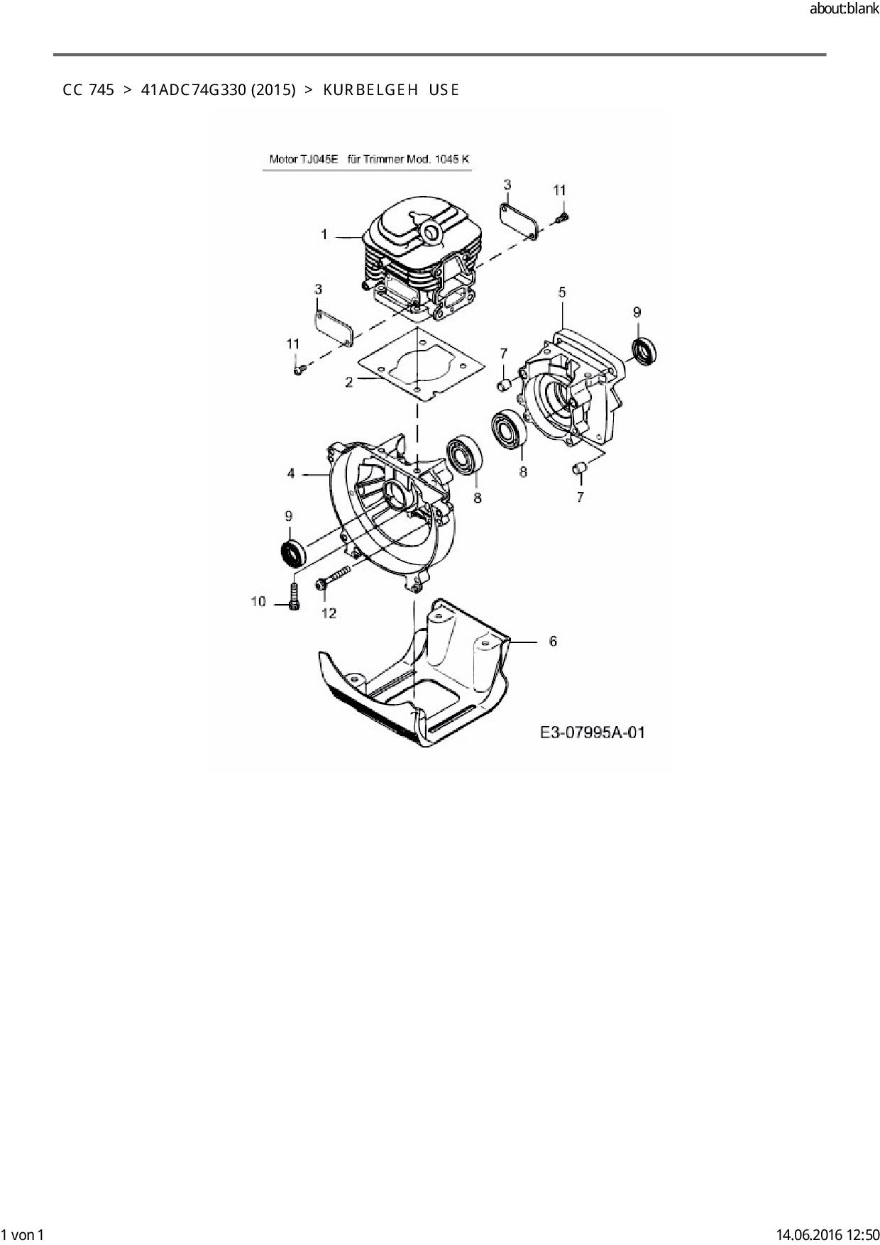 Ersatzteile für Motorsense Cub Cadet CC 745 aus der Zeichnung Kurbelgehäuse: