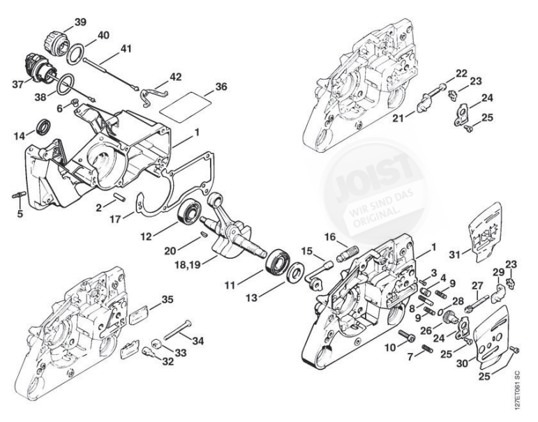 Hier finden Sie alle Ersatzteile von Stihl Benzin-Motorsägen 024 S der Zeichnungsgruppe Kurbelgehäuse: