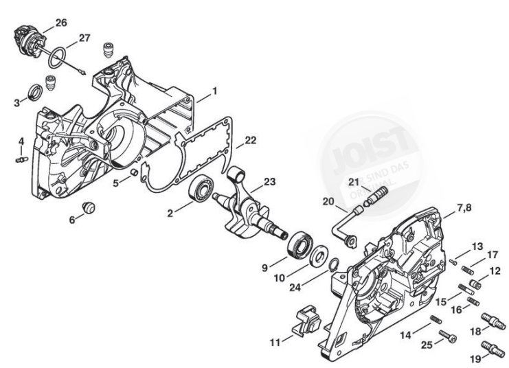 Hier finden Sie alle Ersatzteile von Stihl Benzin-Motorsägen MS 341 der Zeichnungsgruppe Kurbelgehäuse: