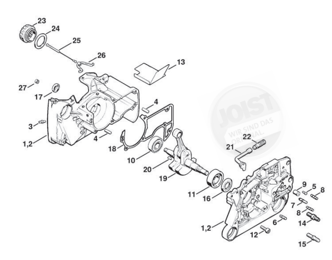 Hier finden Sie alle Ersatzteile von Stihl Benzin-Motorsägen MS 650 der Zeichnungsgruppe Kurbelgehäuse: