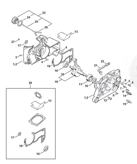 Hier finden Sie alle Ersatzteile von Stihl Benzin-Motorsägen MS 660 der Zeichnungsgruppe Kurbelgehäuse: