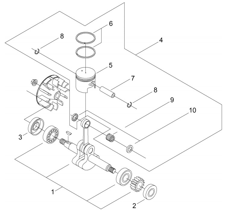 Zeichnung von shindaiwa Motorsensen T-Serie,Motorsensen mit Rundgriff T2510 bis S.-Nr.: 36999999 Kurbelwelle, Kolben: