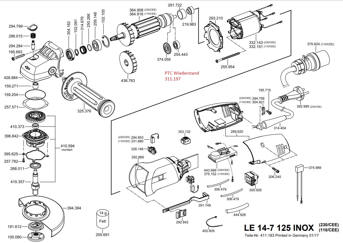 Folgende Ersatzteile für Flex LE 14-7 125 INOX 230CEE können Sie hier bestellen: