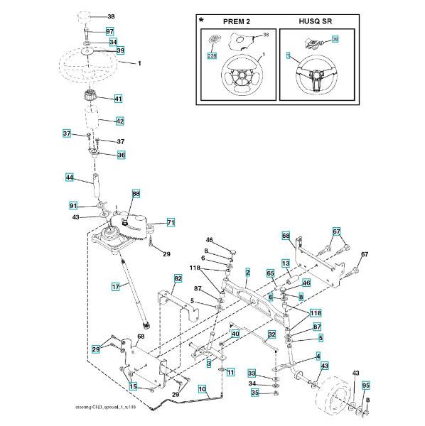 Zeichnung für Husqvarna Gartentraktoren CTH191 ( 96061018805, 2009-01 ) LENKUNG