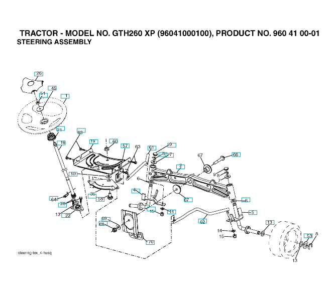 Folgende Ersatzteile für Husqvarna Gartentraktor GTH260 XP ( 96041000100, 2006-01 ) LENKUNG können Sie hier bestellen: