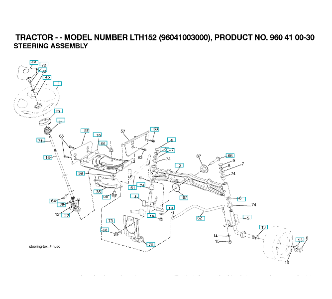 Ersatzteile für Husqvarna Gartentraktor LTH152 ( 96041003000, 960410030, 2007-02 ) LENKUNG: