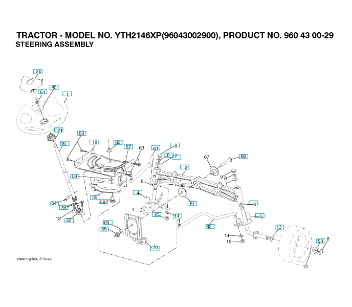 Zeichnung für Husqvarna Gartentraktor LENKUNG Sollten Sie Fragen zu einem Ersatzteil von Husqvarna Gartentraktor YTH2146XP haben, können Sie uns gerne eine Ersatzteilanfrage (mit einem Foto vom Typenschild Ihres Gerätes) stellen.