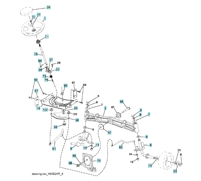 Folgende Ersatzteile für Husqvarna Gartentraktor YT46LS ( 96043016701, 2013-09 ) LENKUNG können Sie hier bestellen: