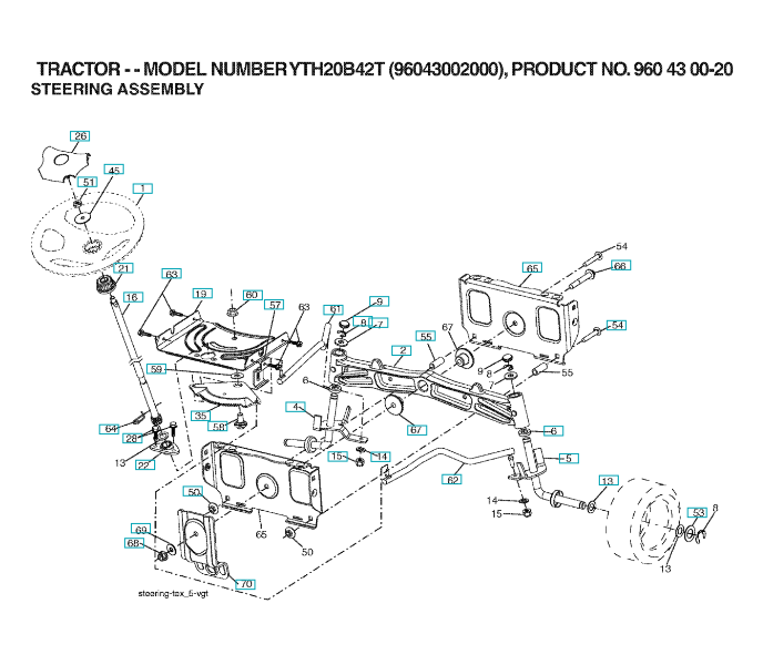 Folgende Ersatzteile für Husqvarna Gartentraktor YTH20B42T ( 96043002000, 960430020, 2006-01 ) LENKUNG können Sie hier bestellen: