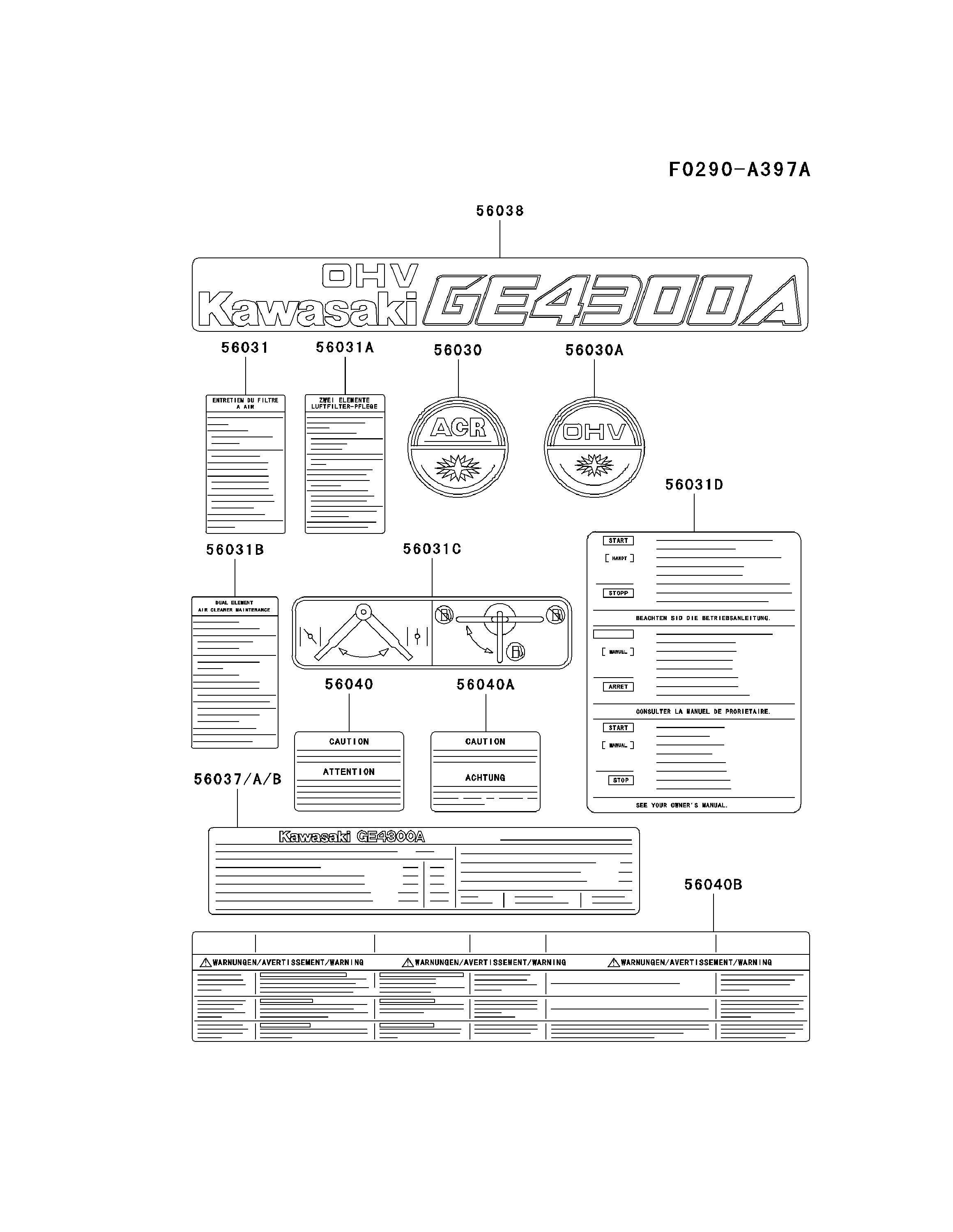 Hier finden Sie alle Ersatzteile von Kawasaki Generatoren GER30A-BS58 (GE4300A) aus der Zeichnung Label: