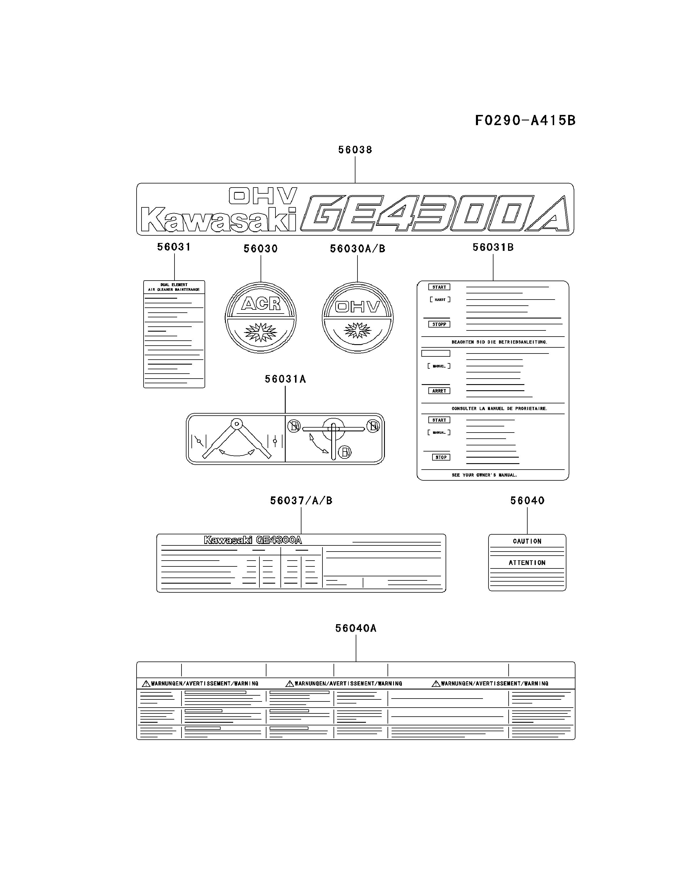Hier finden Sie alle Ersatzteile von Kawasaki Generatoren GER30A-CS55 (GE4300A) aus der Zeichnung Label: