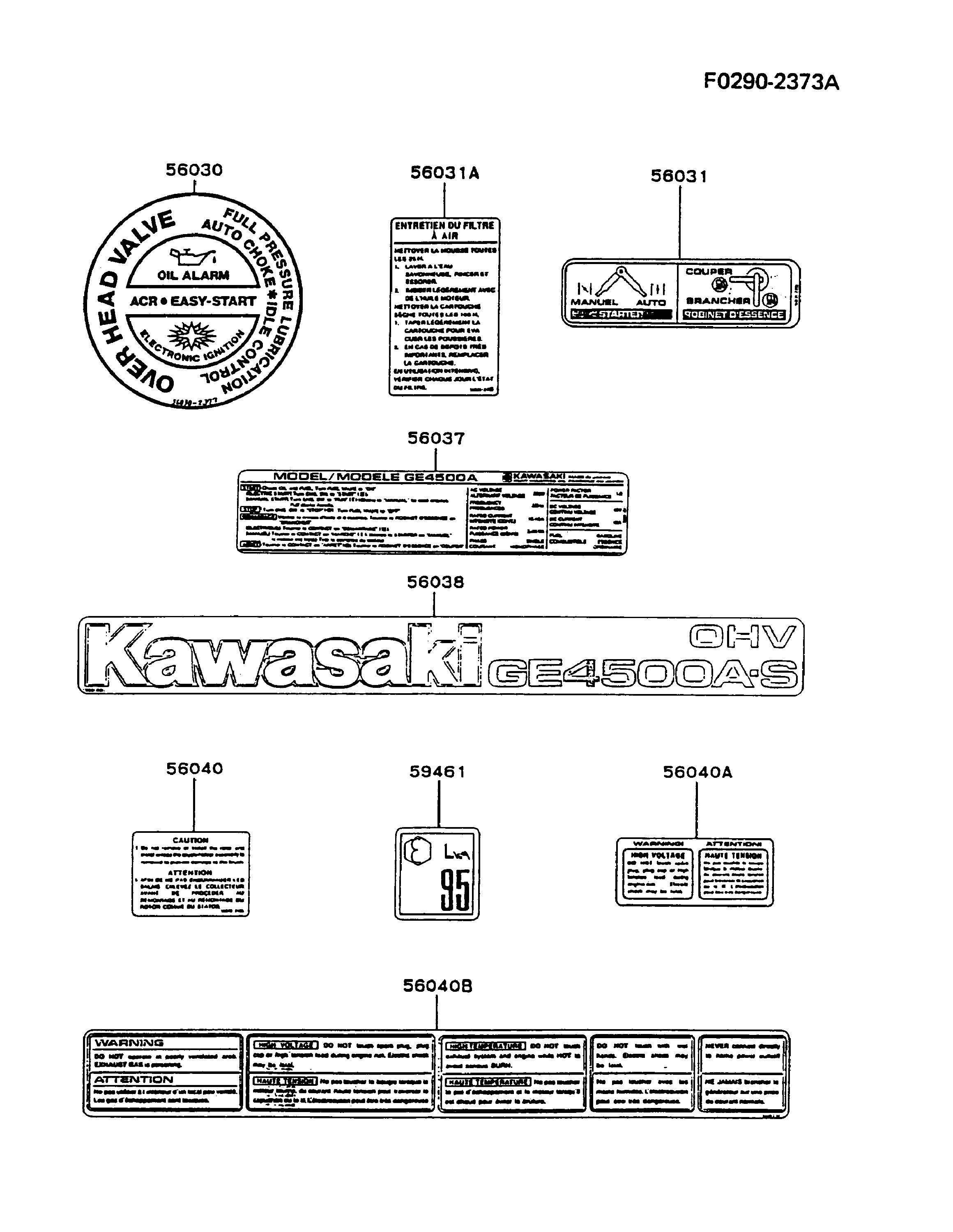 Hier finden Sie alle Ersatzteile von Kawasaki Generatoren GER50A-AS52 (GE4500A) aus der Zeichnung Label: