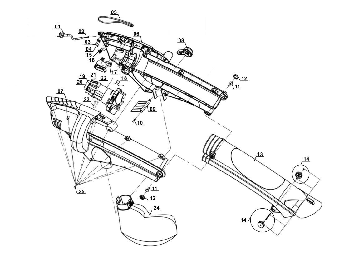 Zeichnung Sollten Sie Fragen zu einem Ersatzteil vom Einhell Royal Laubsauger REL 2100 ( 3433140 ) haben, können Sie uns gerne eine E-Mail (mit einem Foto vom Typenschild Ihres Gerätes) schreiben oder eine Ersatzteilanfrage stellen.