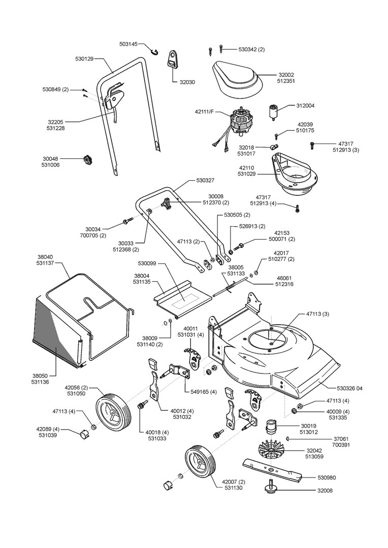 Zeichnungen von AL-KO Elektrorasenmäher Lazer 410 E mit der Geräte-Artikelnr. 120680: