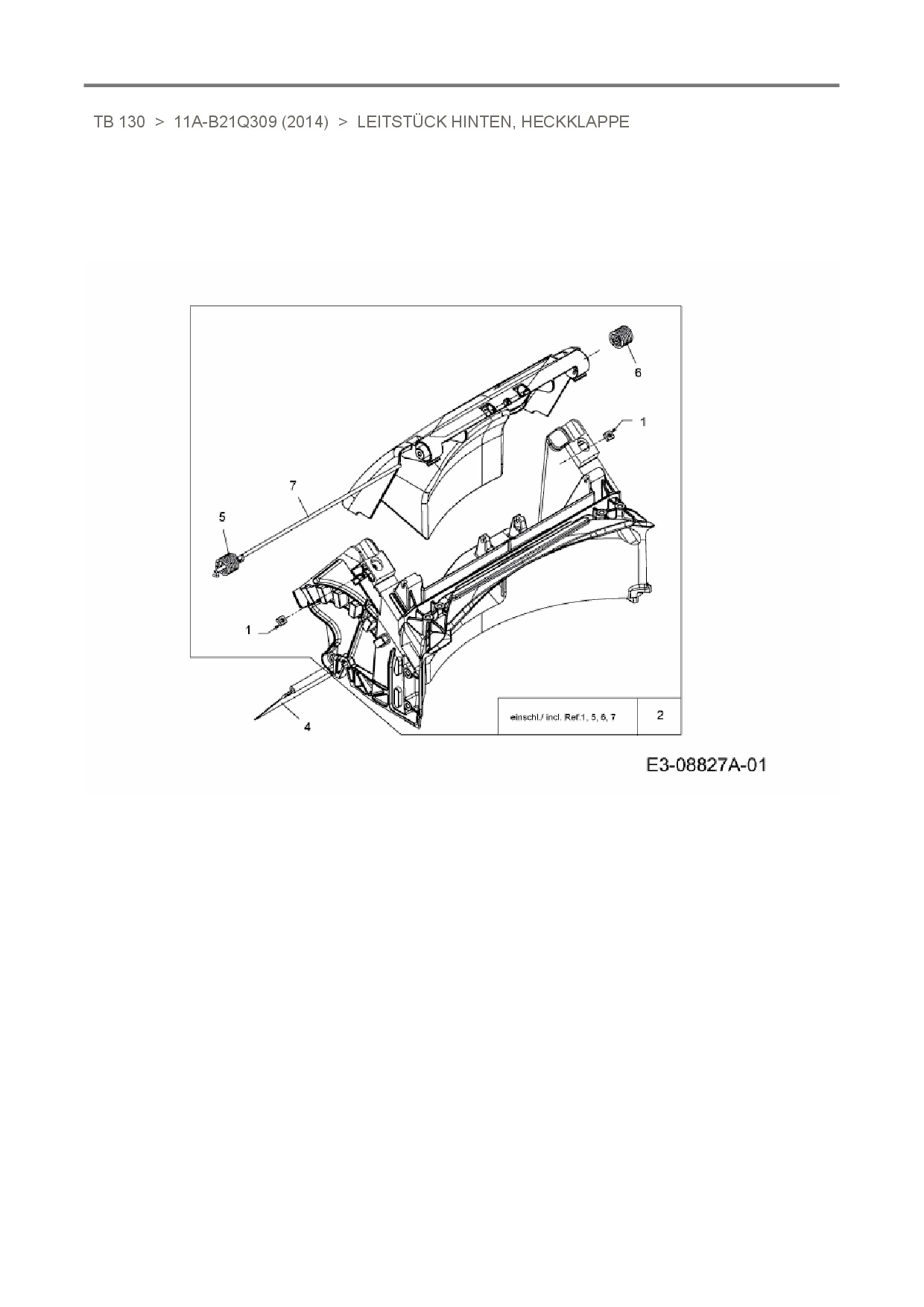 Ersatzteile für Motormäher Troy-Bilt TB 130 aus der Zeichnung Leitstück hinten, Heckklappe:
