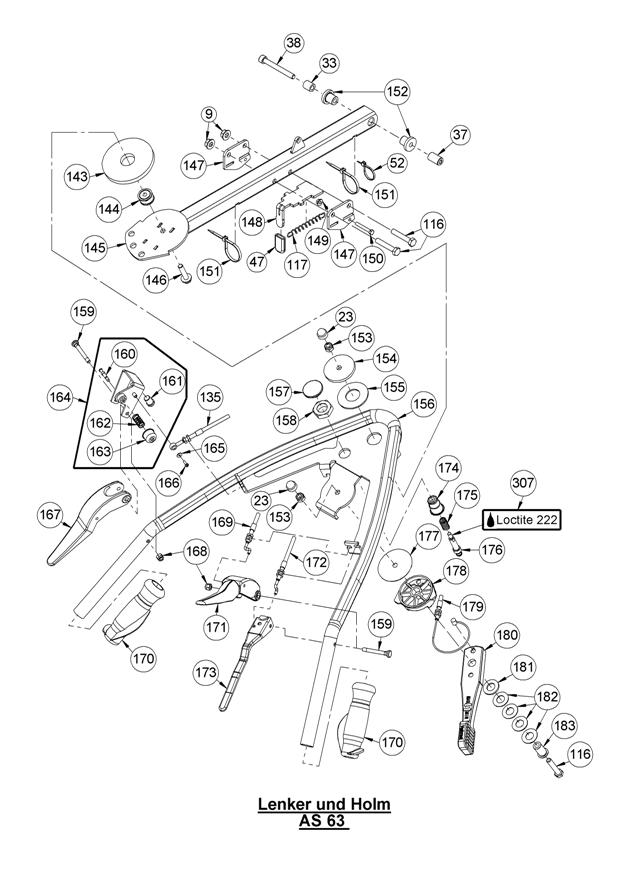 Hier finden Sie alle Ersatzteile von AS-Motor Allmäher AS 63 2T ES ab FNr. 027015120001 aus dem Zeichnungsblatt Lenker und Holm: