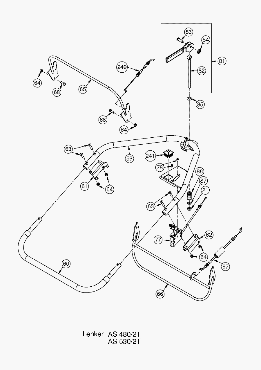 Hier finden Sie alle Ersatzteile von AS-Motor Profi-Rasenmäher AS 480/2T ab FNr. 018907202001 aus dem Zeichnungsblatt Lenker: