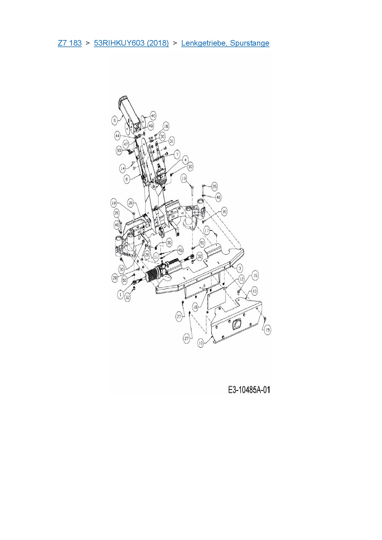 Ersatzteile für Zero Turn Cub Cadet Z7 183 aus der Zeichnung Lenkgetriebe, Spurstange: