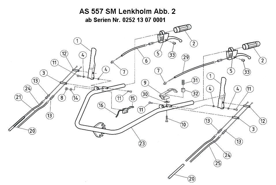 Hier finden Sie alle Ersatzteile von AS-Motor Schlegelmäher AS 557 SM ab FNr. 025213070001 aus dem Zeichnungsblatt Lenkholm Abb.2:
