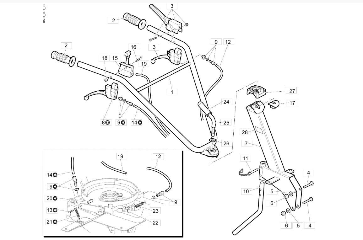 Hier finden Sie alle Ersatzteile für EFCO Motorhacke MZ 2000 aus der Zeichnung Lenkholm und Steuerhebel: