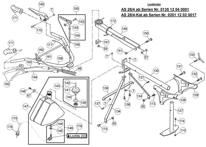 Hier finden Sie alle Ersatzteile von AS-Motor Allmäher AS 28 2T und AS 28/4-Kat ab FNr. 020112020017 aus dem Zeichnungsblatt Lenkholm: