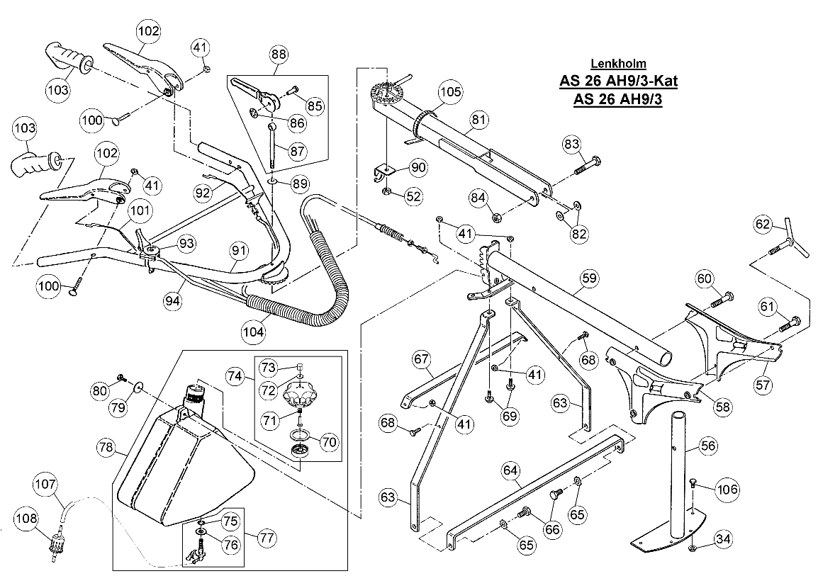 Hier finden Sie alle Ersatzteile von AS-Motor Allmäher AS 26 2T und AS 26 AH9/3-Kat ab FNr. 020008020001 aus dem Zeichnungsblatt Lenkholm: