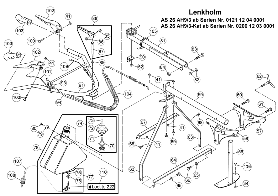 Hier finden Sie alle Ersatzteile von AS-Motor Allmäher AS 26 2T und AS 26 AH9/3-Kat ab FNr. 020014040001 aus dem Zeichnungsblatt Lenkholm:
