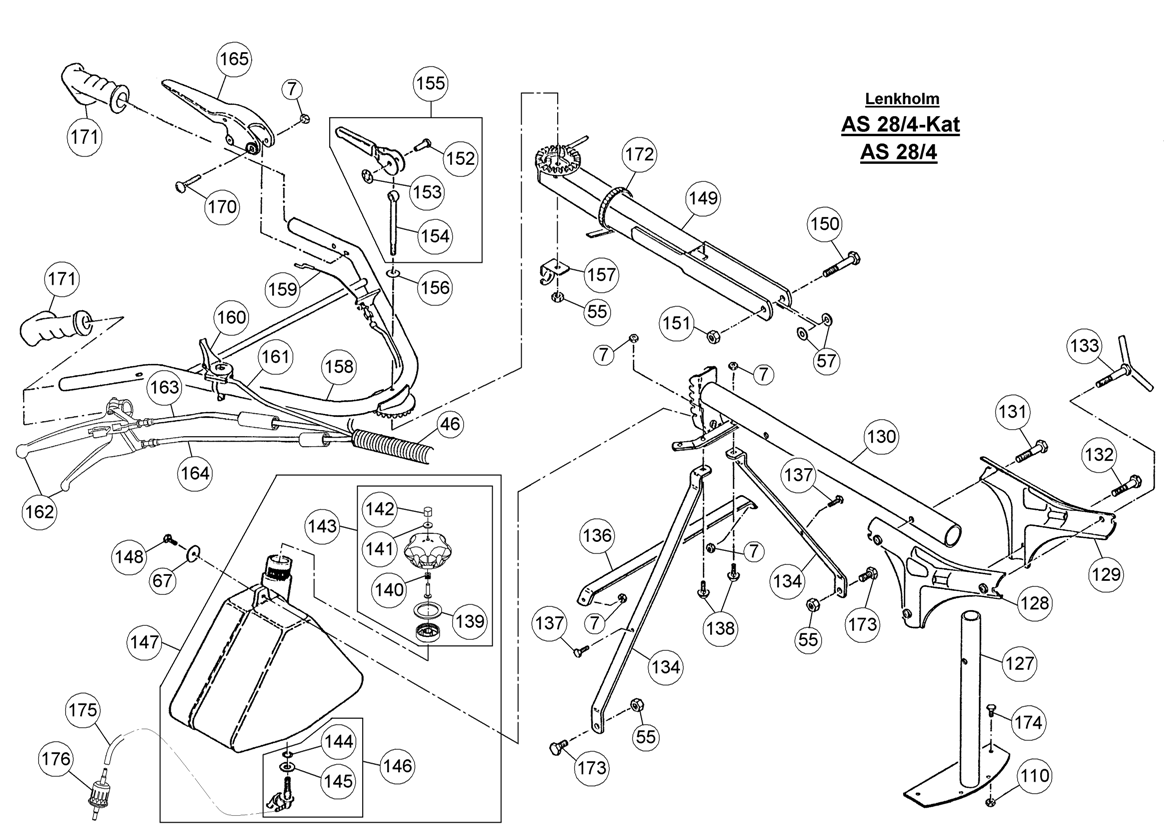 Hier finden Sie alle Ersatzteile von AS-Motor Allmäher AS 28 2T und AS 28/4-Kat ab FNr. 020111040021 aus dem Zeichnungsblatt Lenkholm: