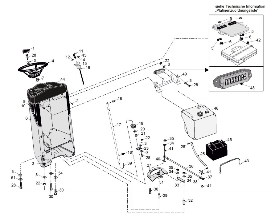 Zeichnung von ECHO-Motorgeräte Rasentraktoren A-Serie A-115KO - E1100007 Lenkkonsole, Tank A-115KO: