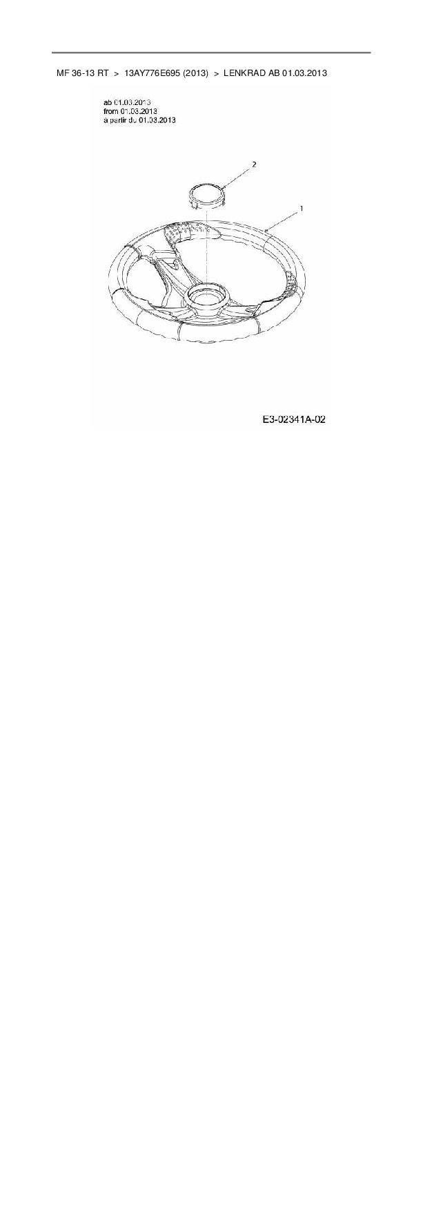 Ersatzteile für Rasentraktor Massey Ferguson MF 36-13 RT aus der Zeichnung Lenkrad ab 01.03.2013: