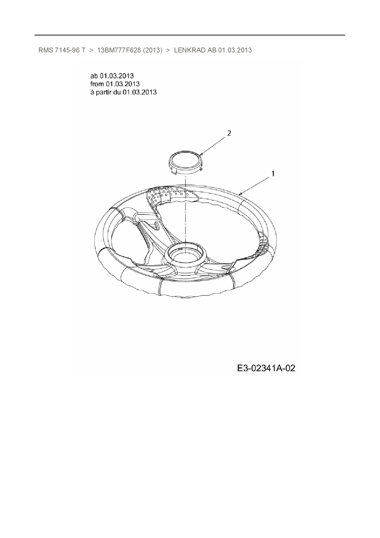 Ersatzteile für Rasentraktor Raiffeisen RMS 7145-96 T aus der Zeichnung Lenkrad ab 01.03.2013: