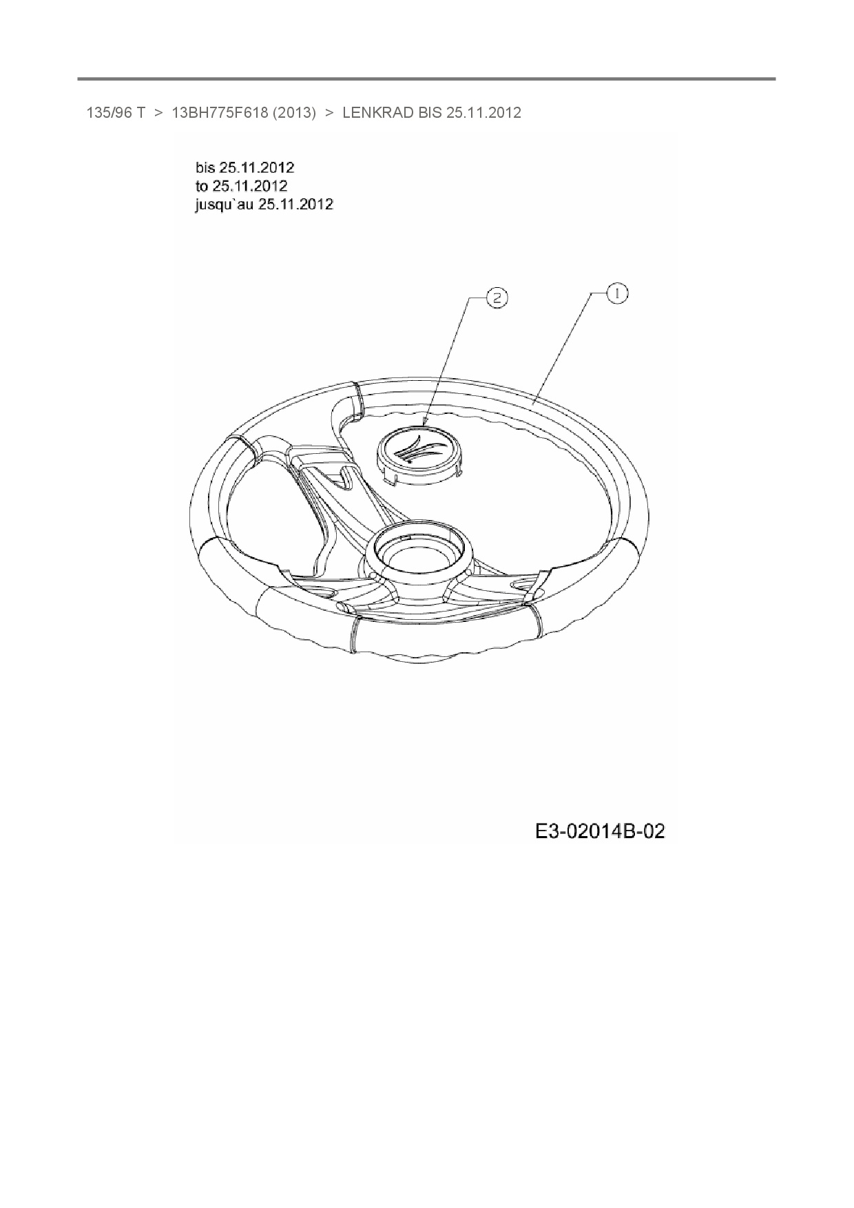 Ersatzteile für Rasentraktor Rasor 135/96 T aus der Zeichnung Lenkrad bis 25.11.2012: