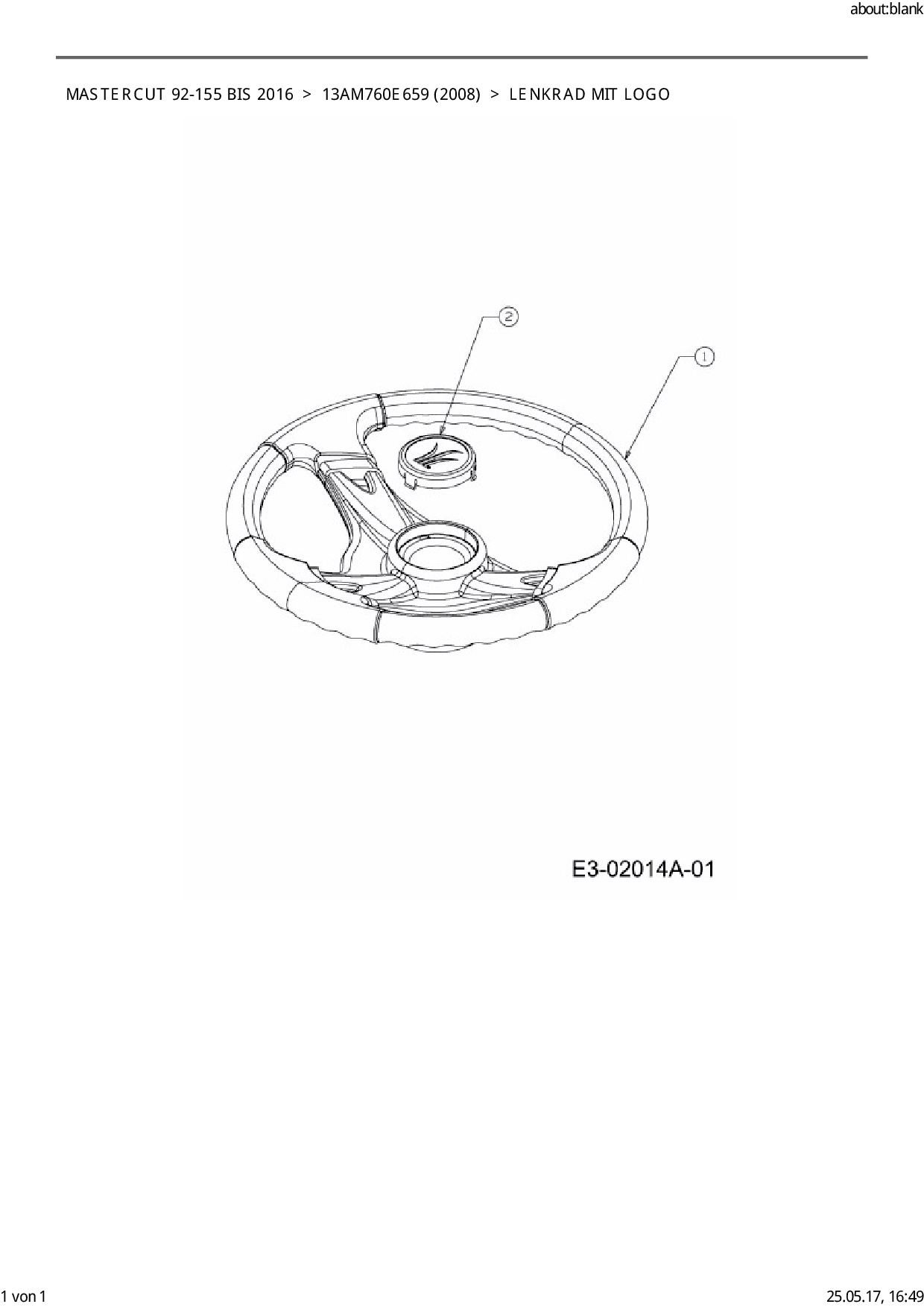 Ersatzteile für Rasentraktor Mastercut Mastercut 92-155 bis 2016 aus der Zeichnung Lenkrad mit Logo: