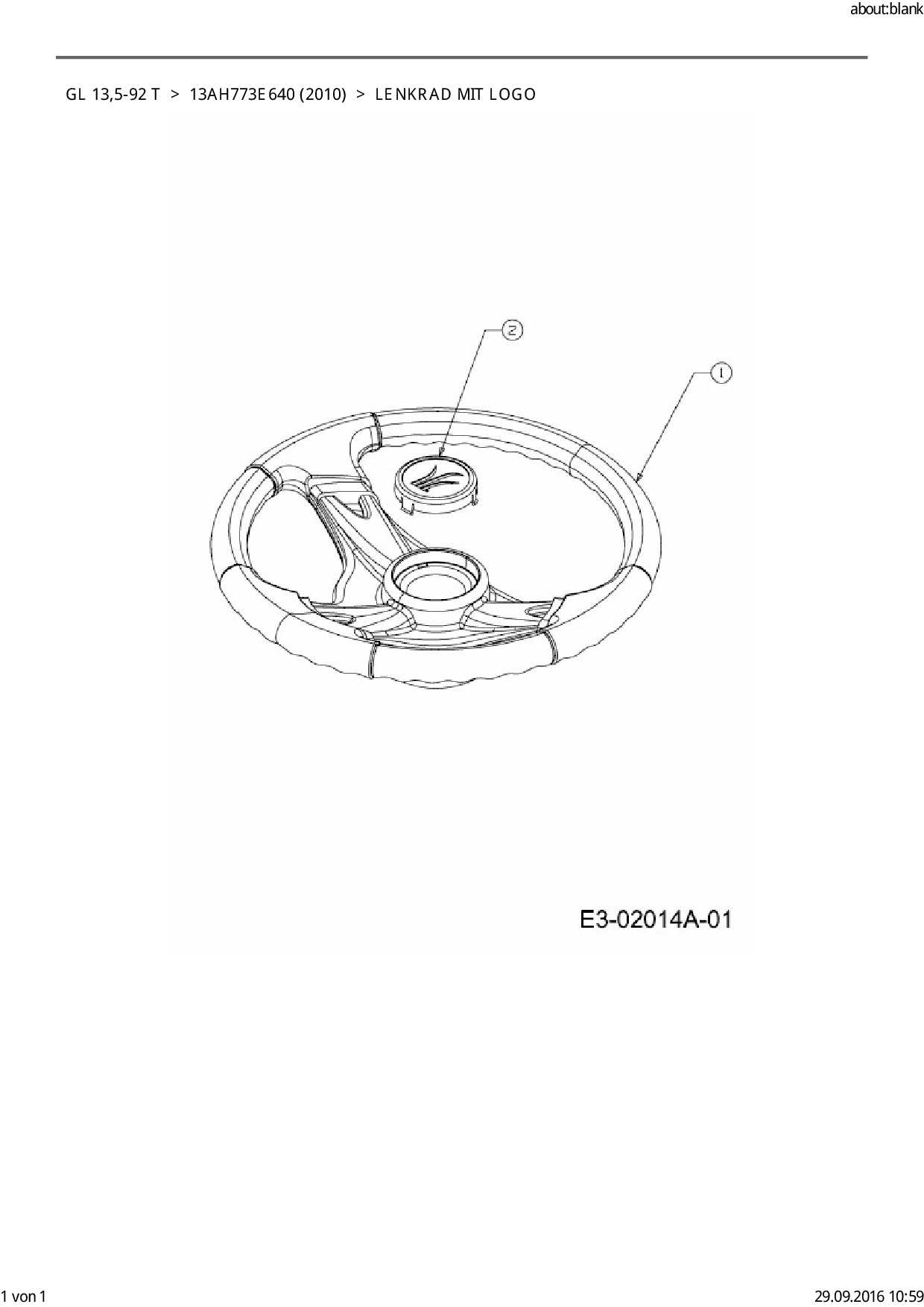 Ersatzteile für Rasentraktor Gartenland GL 13,5-92 T aus der Zeichnung Lenkrad mit Logo: