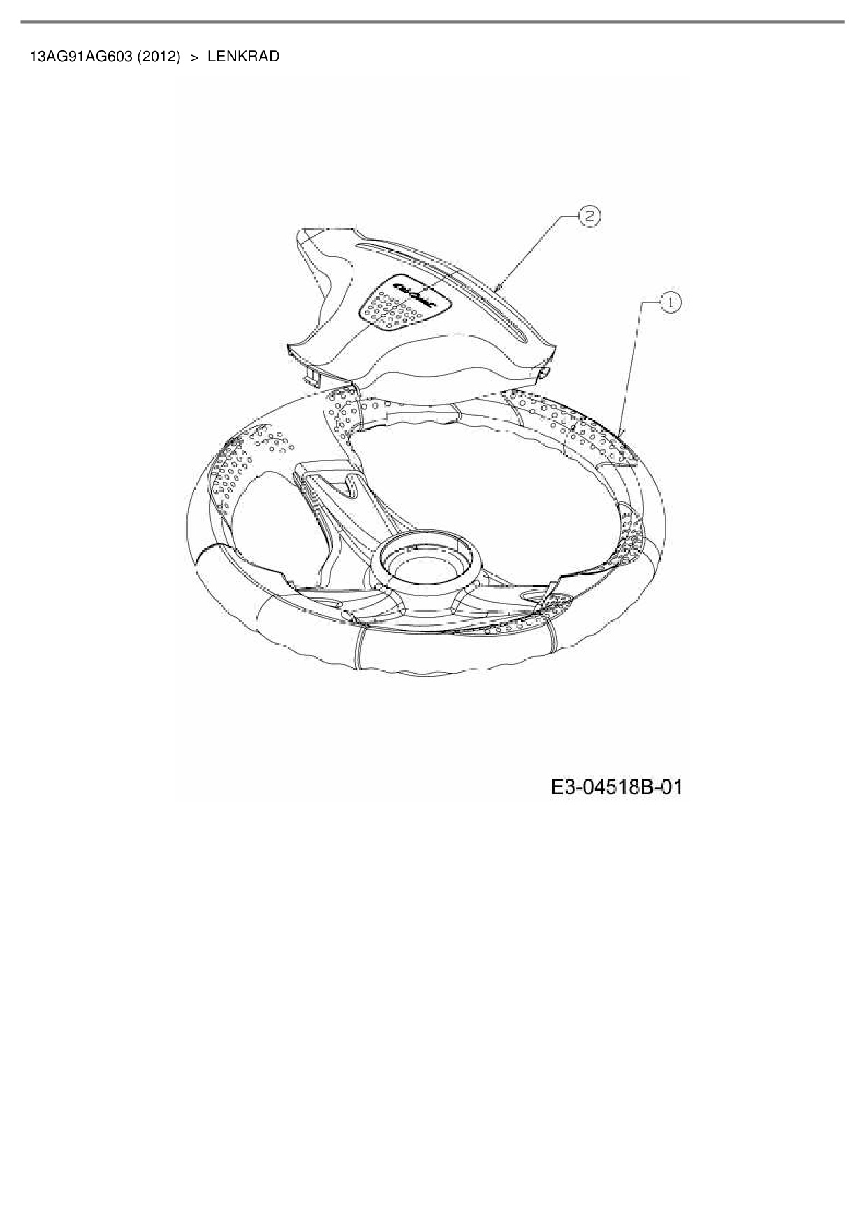 Ersatzteile für Rasentraktor Cub Cadet CC 1016 KHG aus der Zeichnung Lenkrad: