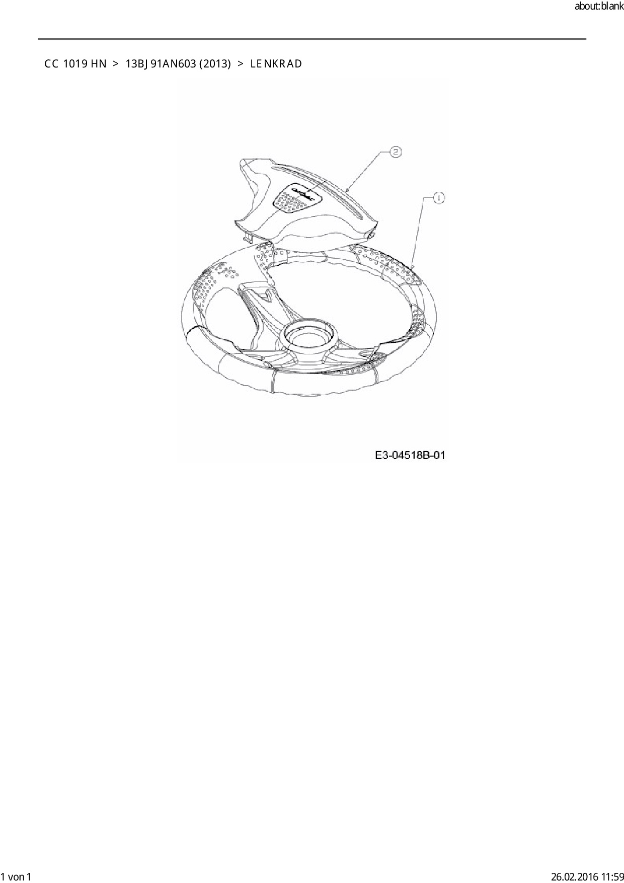 Ersatzteile für Rasentraktor Cub Cadet CC 1019 HN aus der Zeichnung Lenkrad: