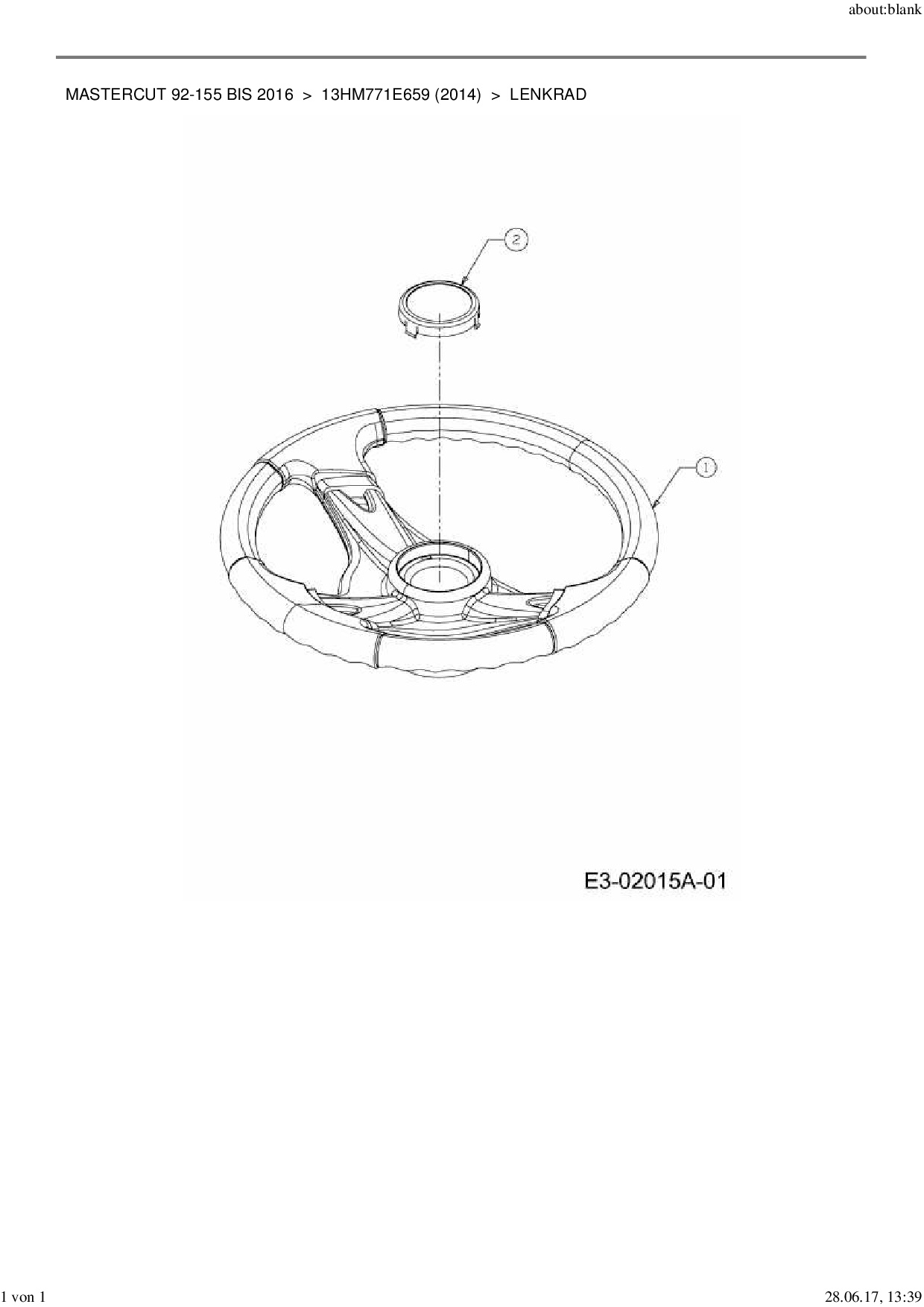 Ersatzteile für Rasentraktor Mastercut Mastercut 92-155 bis 2016 aus der Zeichnung Lenkrad: